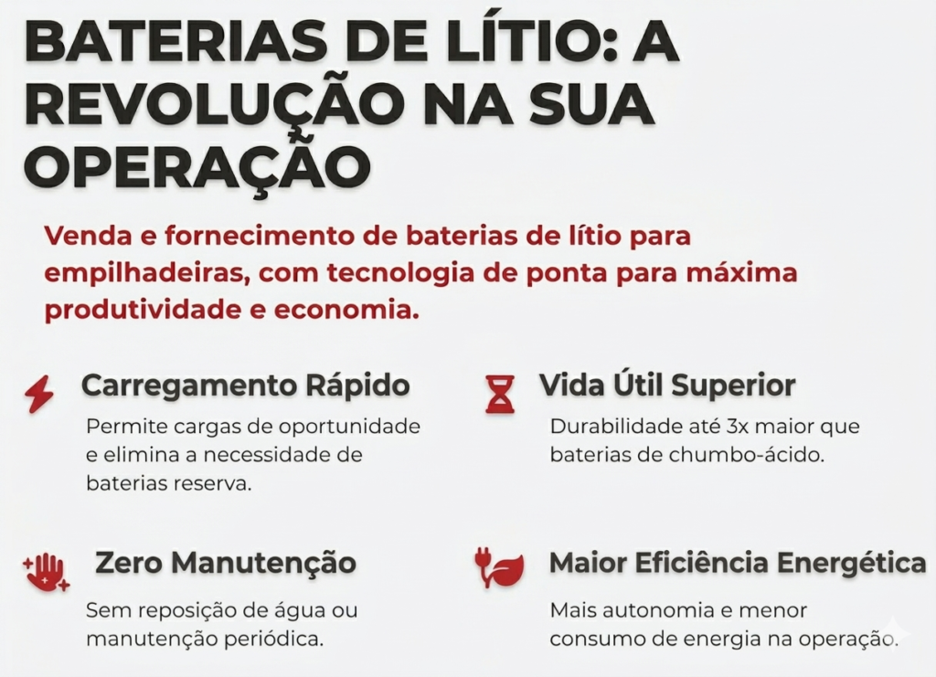 Especialistas em locação de empilhadeiras e fornecimento de baterias de lítio de alta performance. Soluções completas para manter sua operação logística sempre em movimento, com atendimento técnico especializado e suporte rápido.